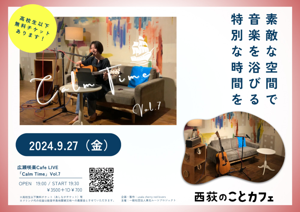 ライブハウスに足を運びづらい方にも、ゆったりとしたCafeで音楽に触れる時間を作れたらと思って「Calm Time」と名付けて企画しました。