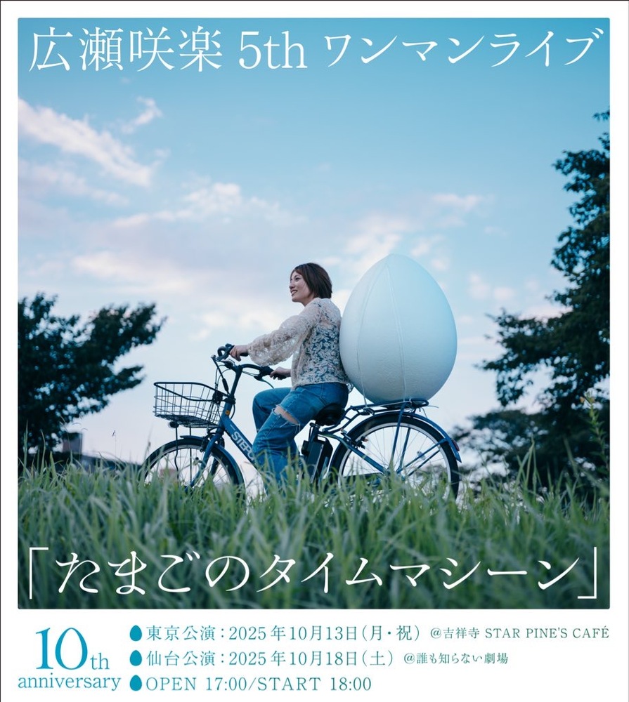 広瀬咲楽5thワンマンライブ「たまごのタイムマシーン」 SCHEDULE 2025/10/18(土) 誰も知らない劇場 2年ぶりのワンマンライブを今回も地元仙台で開催します! 仙台の客席を沢山の方で埋めたい! 詳細は今しばらくお待ちください! チケットの一般発売は8月13日、Usual Club先行のチケット発売は8月8日を予定しています。 URLをコピーする 報告する